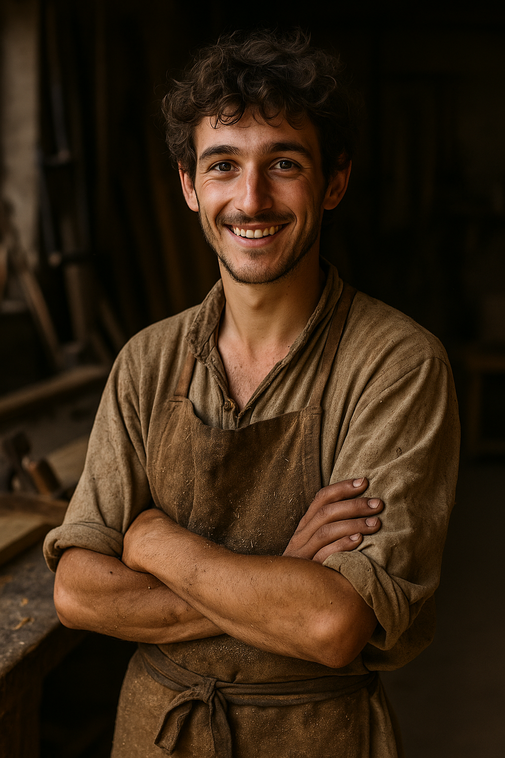 Gabriel è un giovane falegname del convento, cresciuto tra il rumore delle seghe e l’odore della segatura. Uomo di mestiere, ha fatto della precisione e della pazienza le sue virtù. La sua bottega è il luogo dove il legno prende forma, ma anche dove nascono intuizioni che si intrecciano con i sogni di Nicolò e le visioni di Pietro.